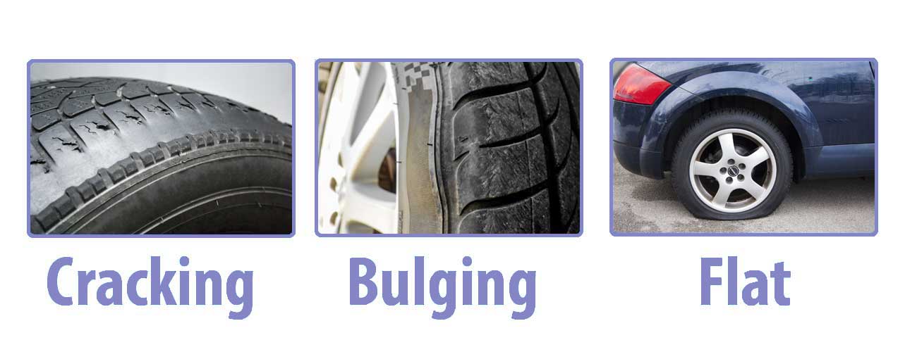 You also want to check for any bulges to the tyres’ sidewalls. Bulges happen when the sidewall is damaged and so the structural integrity of the tyre is weakened which allows the air pressure within the tyre to create a bulge in that location.