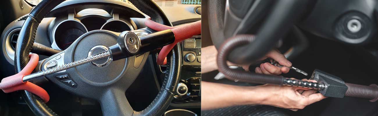 They’re usually very visible and brightly coloured which will deter thieves from even attempting to steal the car and they prevent an essential part of the vehicle from functioning correctly so make it much harder, if not impossible, to operate.