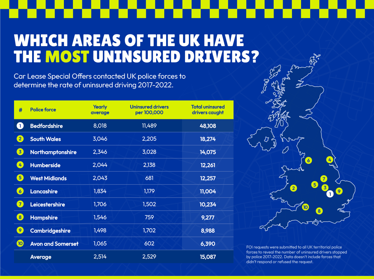 Though not all of the 45 police forces responded or provided the data, 22 did reply with the relevant information at the time of writing. We were then able to determine which areas of the UK were the worst for drivers without the relevant car insurance and which had the lowest number of offenders.